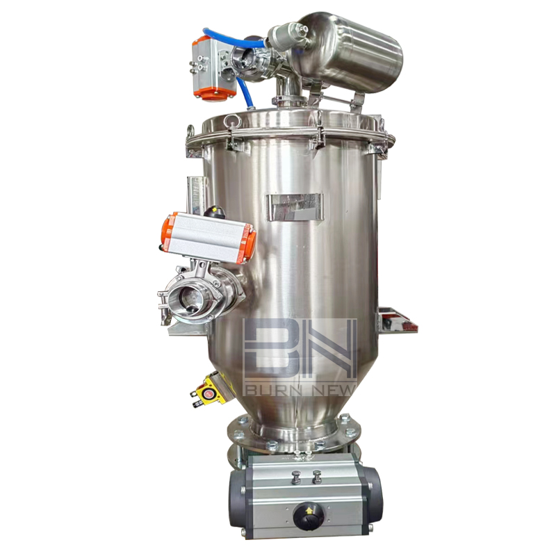 c) -料倉充滿物料時,真空泵自動關閉,輸送設備內的壓力達到平衡。放料閥開啟,物料通過出料口流出,并直接落入儲料容器。